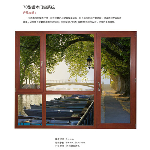 1、采用铝合金和实木结构,温馨时尚,大气坚固。 2、选用德国HOPPE(好博)及ROTO(诺托)进口五金配件,可承载较大面积窗扇,手感舒适,操作灵活。 3、型材与木之间采用新式卡口式连接,****解决两种材料收缩系数不同的问题,外铝内木,具有双重装饰效果,室内是实木装饰面,室外是铝合金装饰面。 4、多重密封设计,确保气密性、水密性、隔音性及隔热性,环保节能性更强。