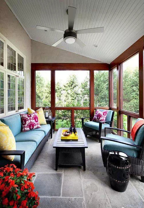 阳光房一般从阳台或露台变化而来,也有别墅在室外加盖的,可能空间不大,但一般玻璃窗户很大,光线非常好。在阳光房的装饰中常见的是采用自然材料,搭配舒适的家具,让室内外的风景在这里衔接自然,一般设置为茶室、小型运动室、玩乐区,打造出更为舒适浪漫的休闲空间。