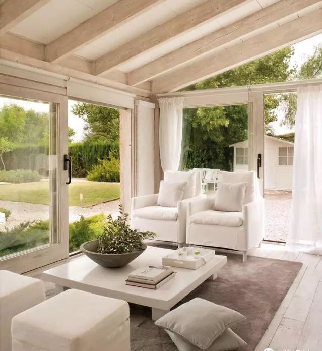 阳光房以亲近阳光为主,它连接着室内外的空间,因此既要和室外空间自然和谐,又与居室内的整体风格相吻合,达到过渡的作用。阳光房除了是放松、休憩的去处,也是****的会客以及休闲区。在颜色上尽量使用浅色,而家具的选择也尽可能天然。
